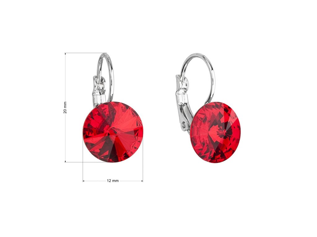 Bižuterní náušnice 51002.3 mají délku 20 mm a zapínají se na klapku. Šperk je zdoben kulatým 12 mm širokým Swarovski krystalem v červené barvě.