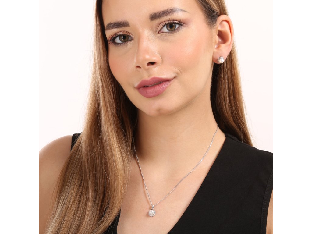 Sada šperků obsahuje kulaté náušnice typu pecky zdobené velkou bílou říční perlou a náhrdelník s perlovým přívěškem. Šperky jsou vyrobeny ze stříbra o ryzosti 925/1000 včetně povrchové úpravy rhodiem a vzhledem k tomu, že neobsahují nikl, jsou vhodné i pro alergiky. Perly, kterými jsou šperky zdobeny, spadají do kategorie nejvyšší kvality AAA. Náušnice i přívěšek se tak mohou pochlubit velmi vysokým leskem. Zapínání náušnic je na balónek.
