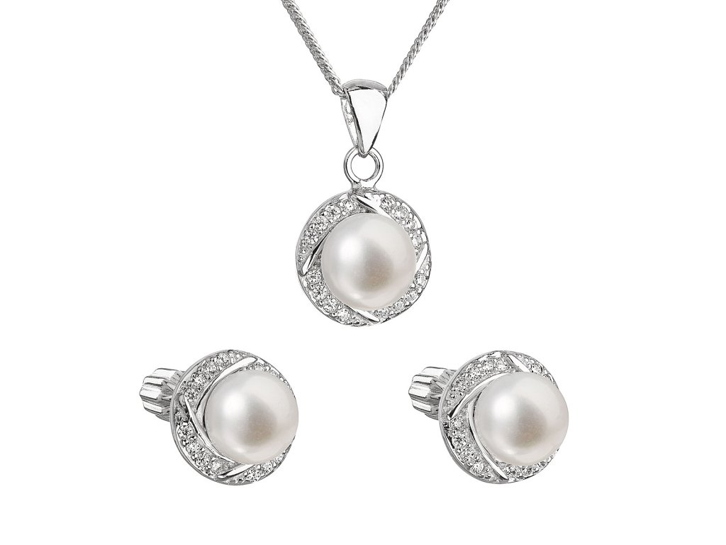 Perlová souprava včetně řetízku z říčních perel bílá 29004.1