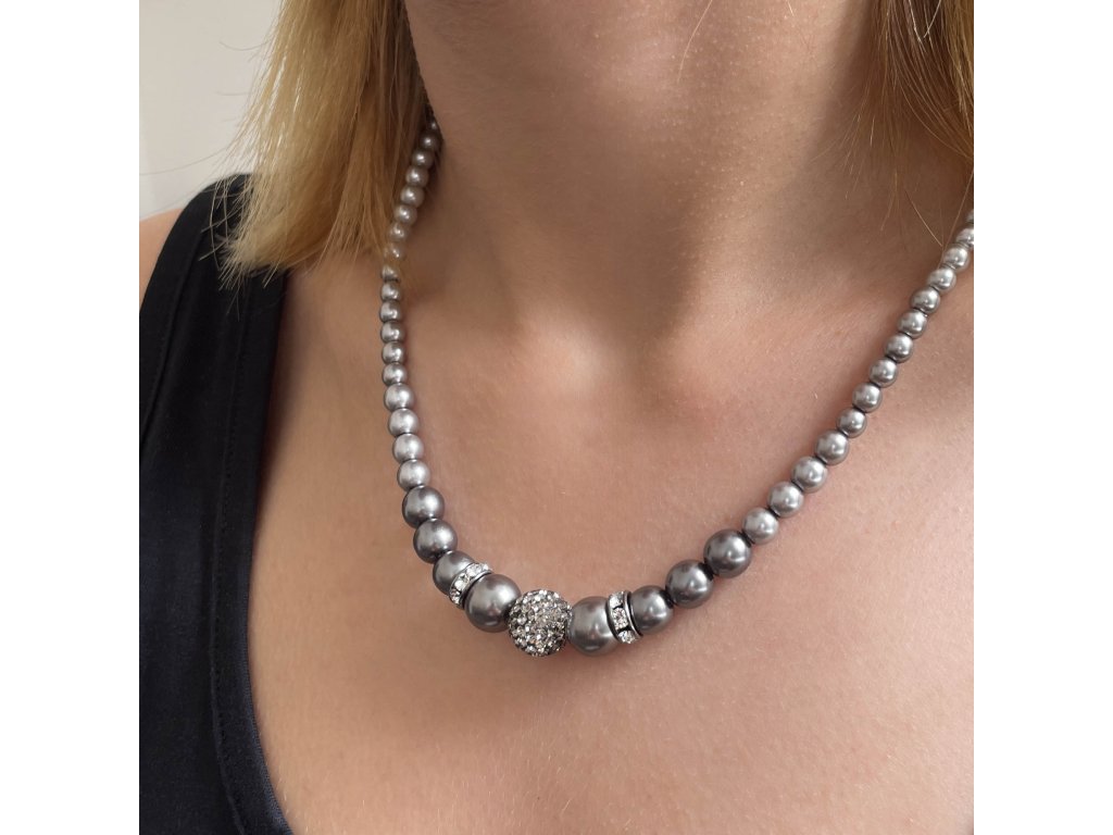 Perlový náhrdelník šedý s Preciosa krystaly 32008.3