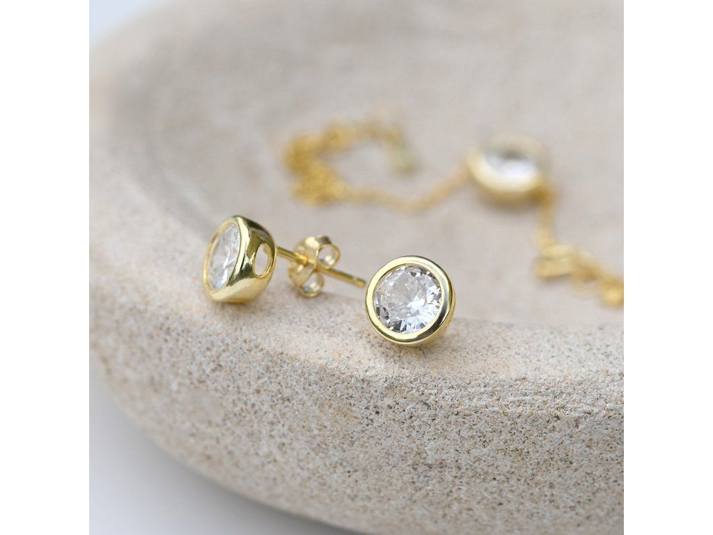 Pozlacené náušnice pecky se zirkonem bílé kulaté 11406.1