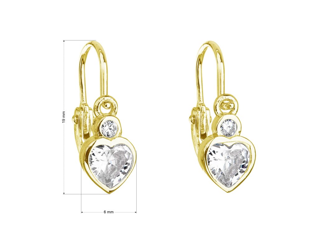 Pozlacené stříbrné dětské náušnice visací se zirkonem bílé srdce 11178.1