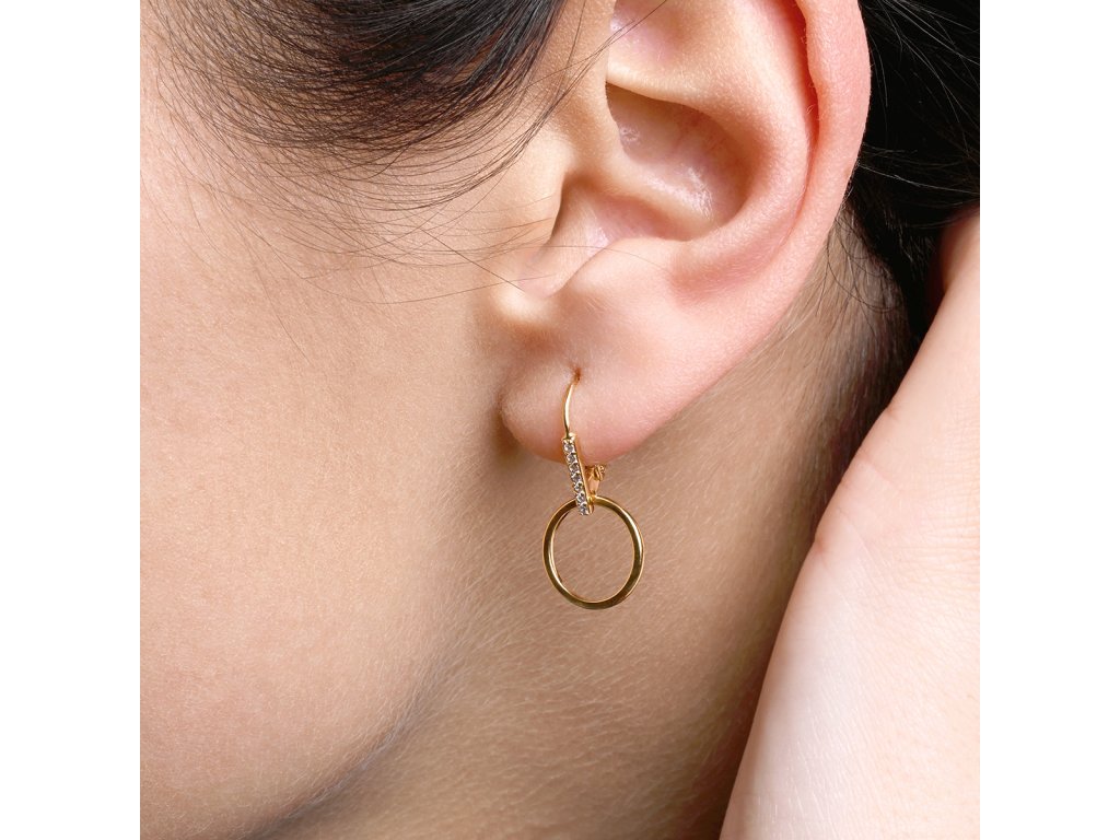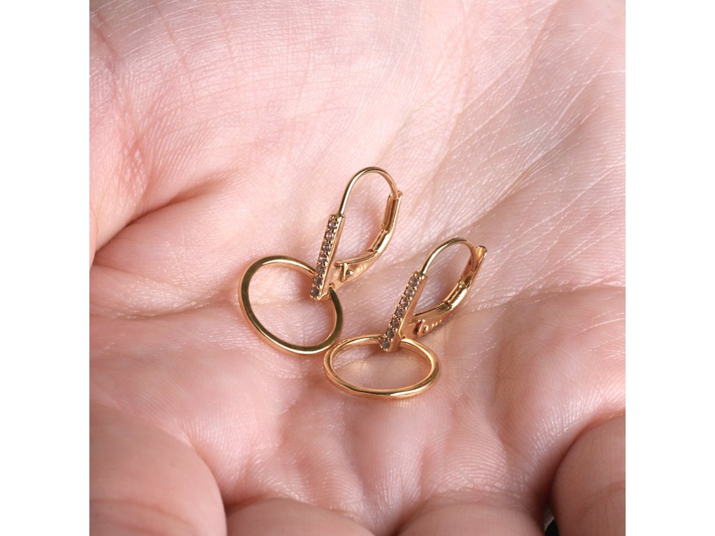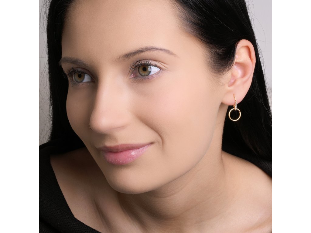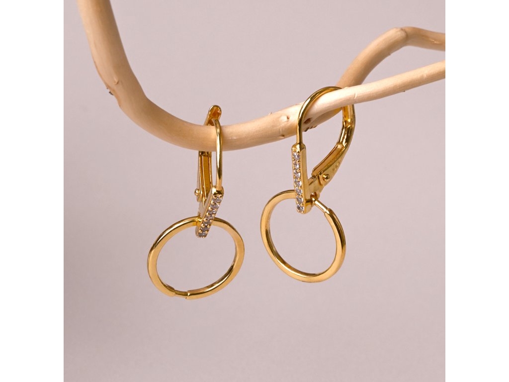 Náušnice jsou vyrobeny z pozlaceného stříbra o ryzosti 925/1000 a mají zapínání na klapku zdobenou zirkony, která zajišťuje pohodlné nošení po celý den. Navíc je ozdobena drobnými kamínky. Kroužek celkový vzhled doplňuje a dodává mu zajímavý a moderní dotek.
