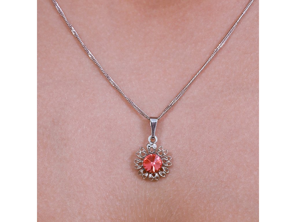Hravé, veselé a plné pozitivní energie jsou přívěsky ve tvaru květin.Přívěšek je zdoben kulatým světle červeným Swarovski krystalem, který je vložen doprostřed květiny. Šperk vyrábíme zcela bez obsahu niklu, je vhodným doplňkem i pro alergiky.