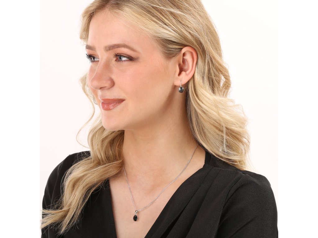 Ráda byste si pořídila šperky, které si můžete vzít k jakémukoliv outfitu? Doporučujeme elegantní a jednoduchou sadu šperků 39140.5 se Swarovski krystaly.Souprava 39140.5 obsahuje visací náušnice, přívěsek ve stejném designu a řetízek. Šperky jsou vyrobeny ze stříbra ryzosti 925/1000, které prošlo povrchovou úpravou rhodiem. Rhodium chrání šperk proti zčernání, zežloutnutí i poškrábání. Přívěšek i náušnice jsou zdobeny kulatými Swarovski krystaly v černé barvě. Náušnice mají zapínání na klapku. Jelikož šperky neobsahuji žádný přídavek niklu, mohou je bez obav nosit i alergici.