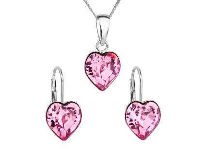 Sada šperků s krystaly Swarovski náušnice, řetízek a přívěsek červené srdce 39141.3