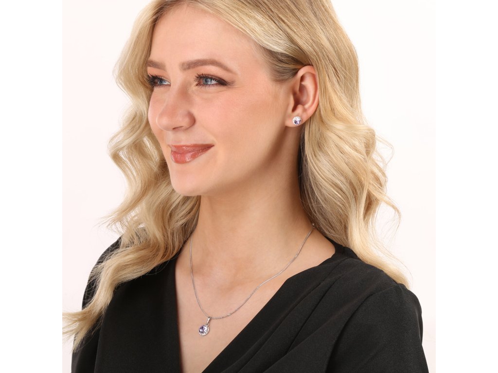 Sada šperků s krystaly Swarovski náušnice, řetízek a přívěsek fialové kulaté 39352.3 violet