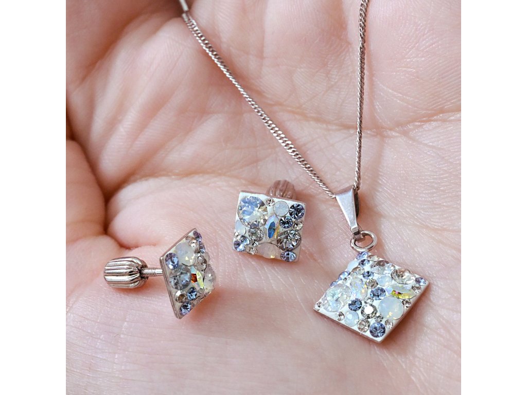 Sada šperků s krystaly Swarovski náušnice a přívěsek mix barev kosočtverec 39126.3 light sapphire