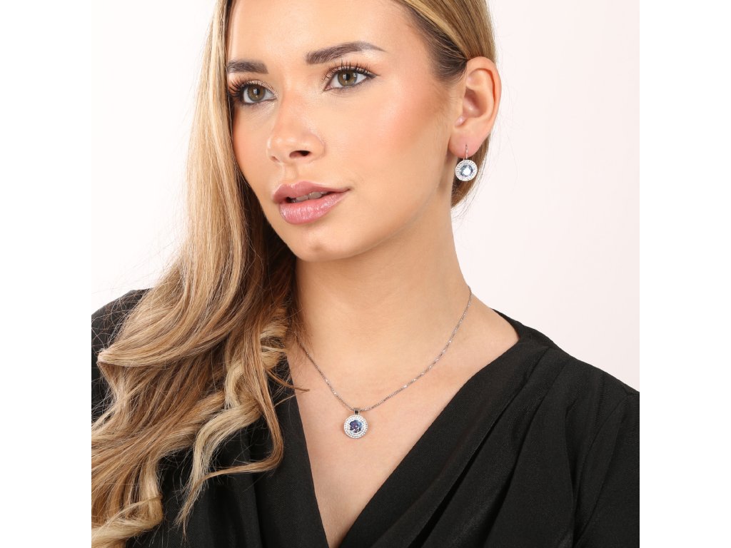 Parametry sady šperků s krystaly Swarovski náušnice a přívěsek modré kulaté 39107.3 light sapphire shimmer