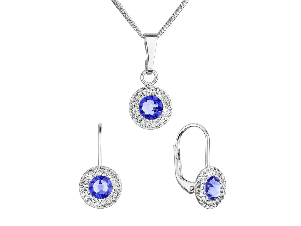 Sada šperků s krystaly Swarovski náušnice a přívěsek modré kulaté 39109.3 sapphire