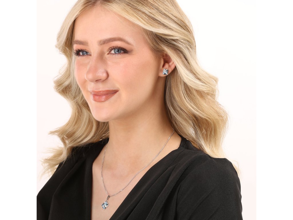 Sada šperků s krystaly Swarovski náušnice a přívěsek modrý kosočtverec 39126.3 aqua