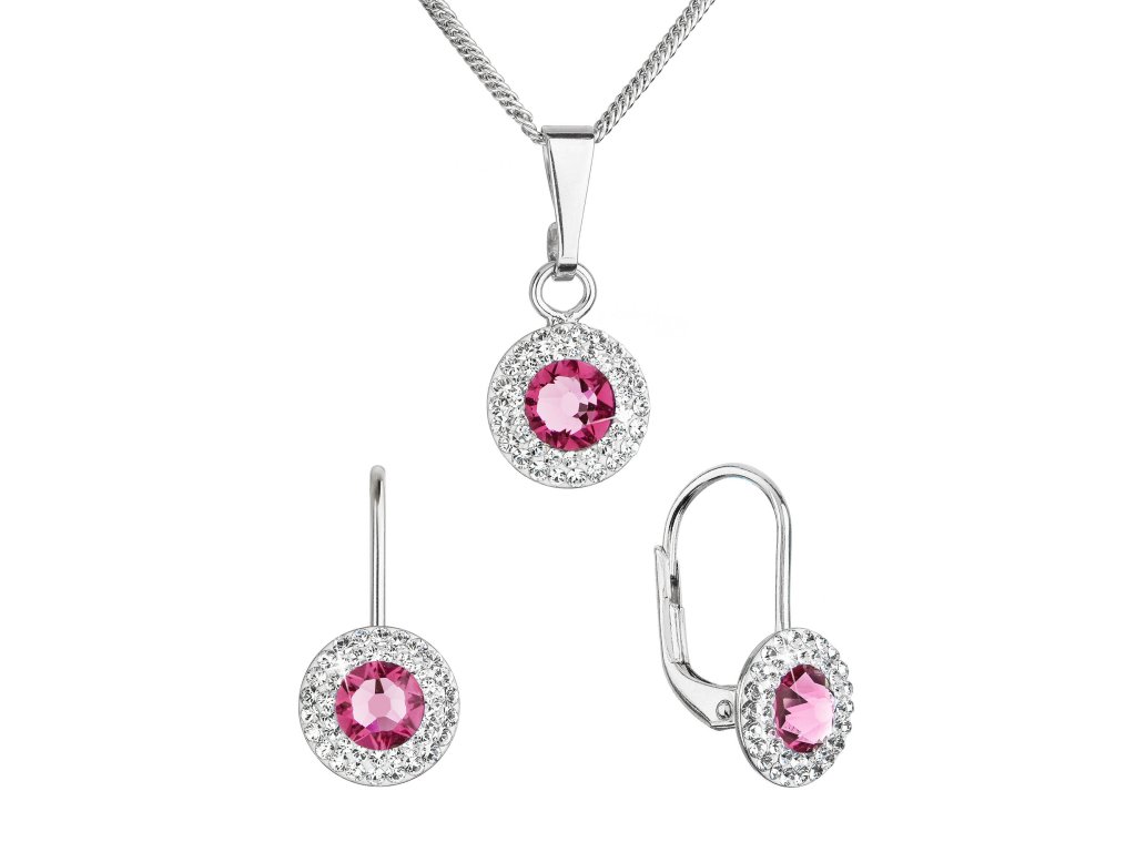 Sada šperků s krystaly Swarovski náušnice a přívěsek růžové kulaté 39109.3 rose