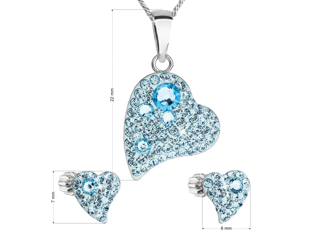 Parametry sady šperků s krystaly Swarovski náušnice, řetízek a přívěsek modré srdce 39170.3