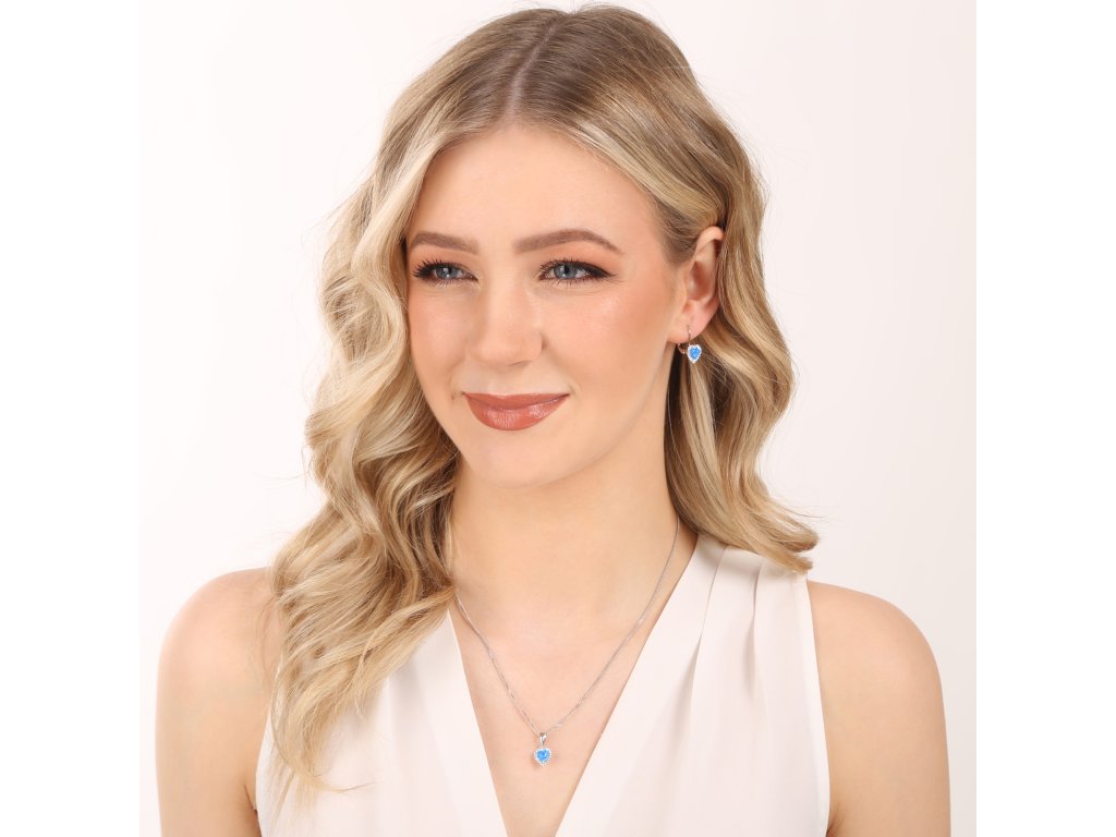 Parametry sady šperků se syntetickým opálem a krystaly Preciosa náušnice a přívěšek modré srdce 39161.1