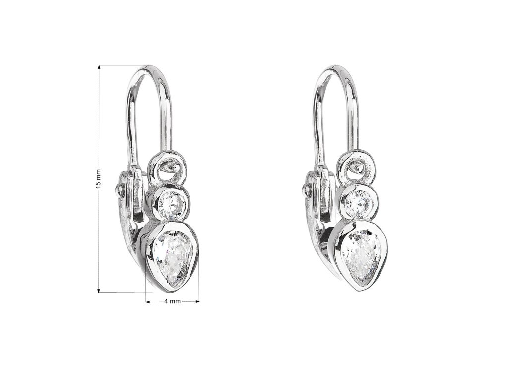 Parametry stříbrných dětských visacích náušnic se zirkonem v bílé barvě 11197.1