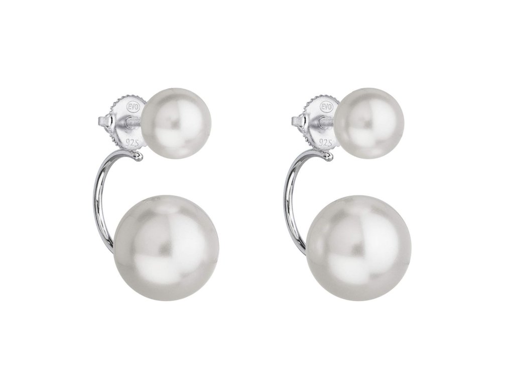 Stříbrné náušnice dvojité s perlou Preciosa bílé kulaté 31177.1