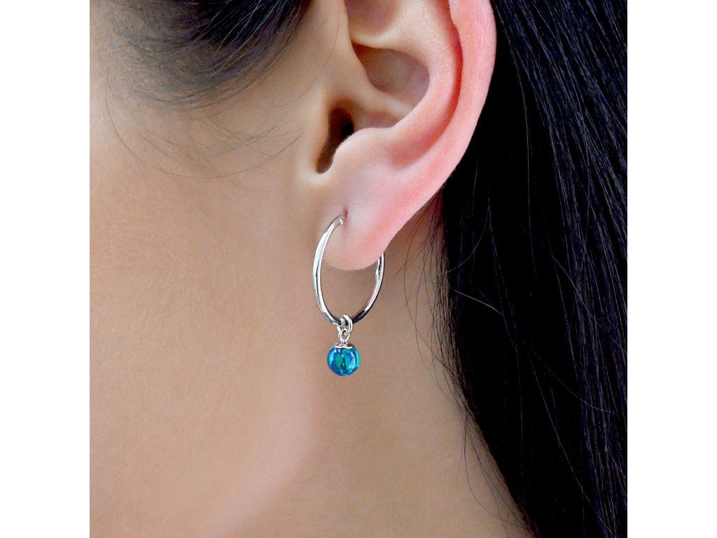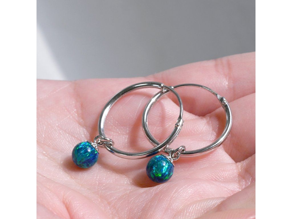 Stříbrné náušnice kruhy s kuličkou ze zeleného syntetického opálu 11410.3 green