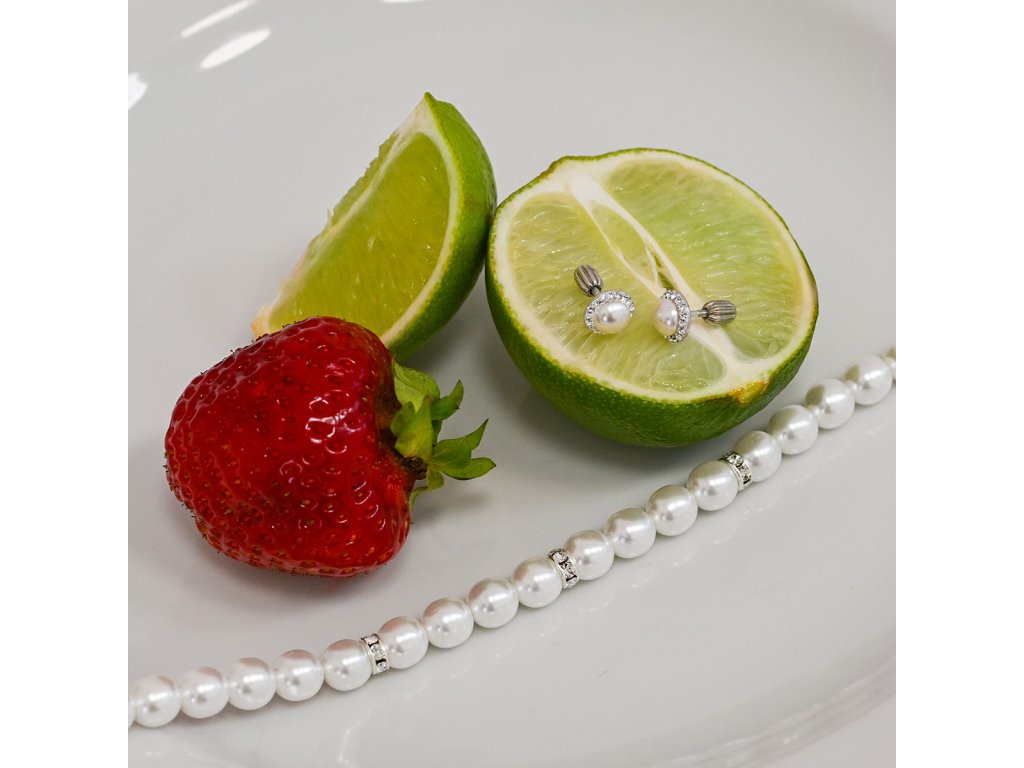 Stříbrné náušnice pecka s krystaly Swarovski a bílou perlou kulaté 31314.1