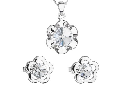 Stříbrné náušnice pecka s krystaly Swarovski bílá kytička 31263.1