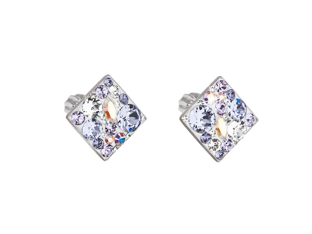 Stříbrné náušnice pecka s krystaly Swarovski fialový kosočtverec 31169.3