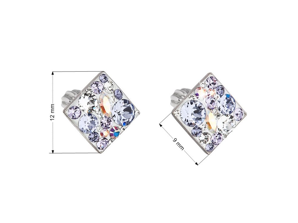 Parametry stříbrných náušnic pecek s krystaly Swarovski fialový kosočtverec 31169.3