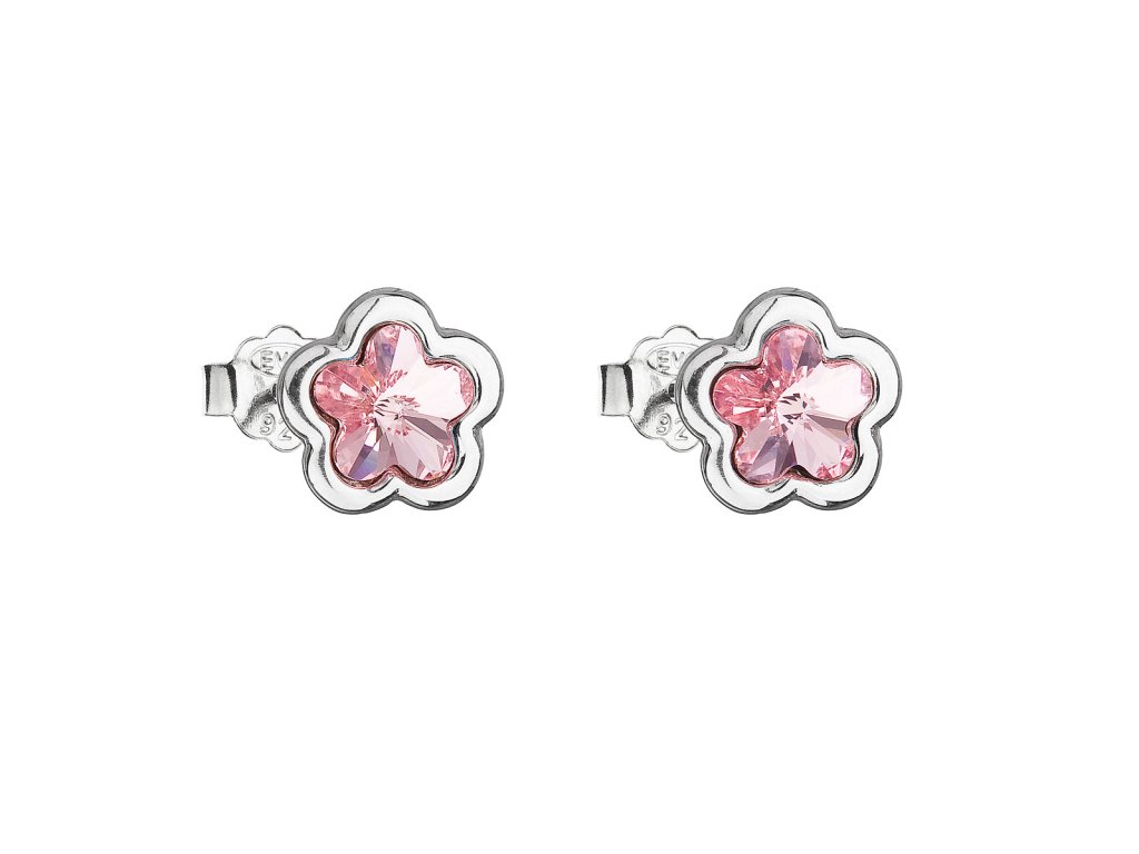Stříbrné náušnice pecka s krystaly Swarovski růžová kytička 31255.3 light rose