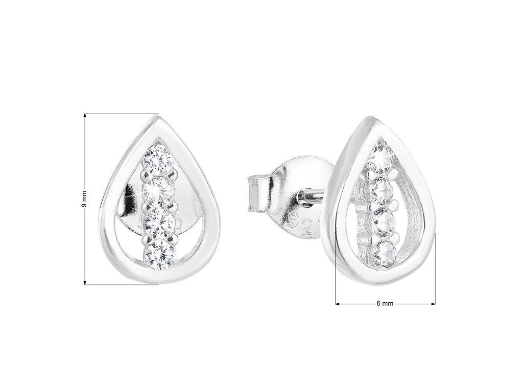 Parametry stříbrných náušnic pecka se zirkonem bílá kapka 11123.1