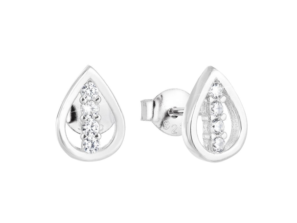 Stříbrné náušnice pecka se zirkonem bílá kapka 11123.1