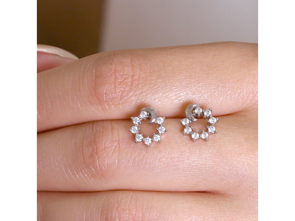 Noční obloha posetá hvězdami a zářícím měsícem připnutá na vašich uších.Stříbrné náušnice 11077.1 jsou vyrobeny ze stříbra ryzosti 925/1000 a mají povrchovou úpravu rhodiem. Tato úprava zabrání zčernání, poškrábání a zežloutnutí stříbra. Neobsahují žádný nikl, proto se nemusíte obávat alergické reakce.