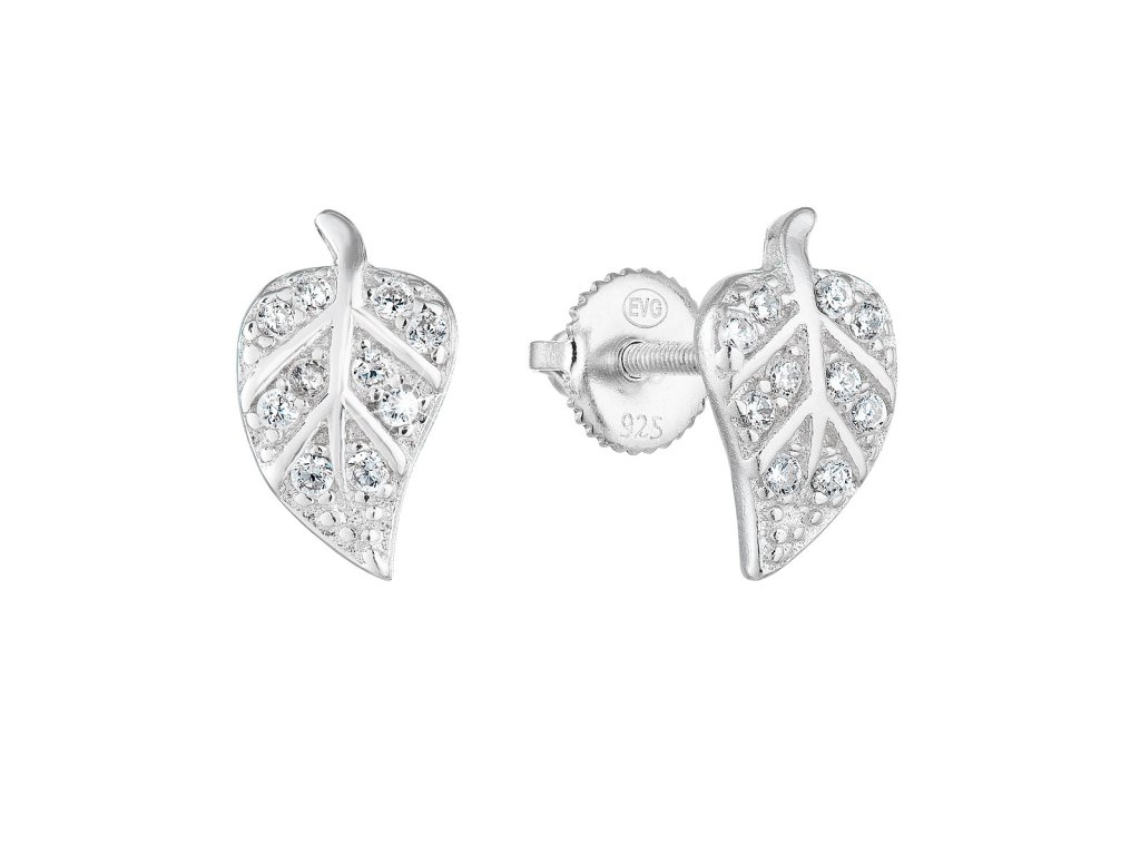 Milujete přírodní motivy? Doplňte svou šperkovnici stříbrnými náušnicemi ve tvaru listu osázené bílými zirkony.