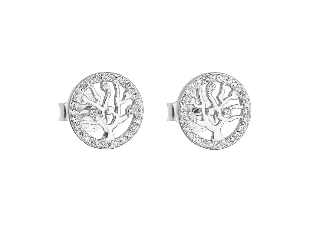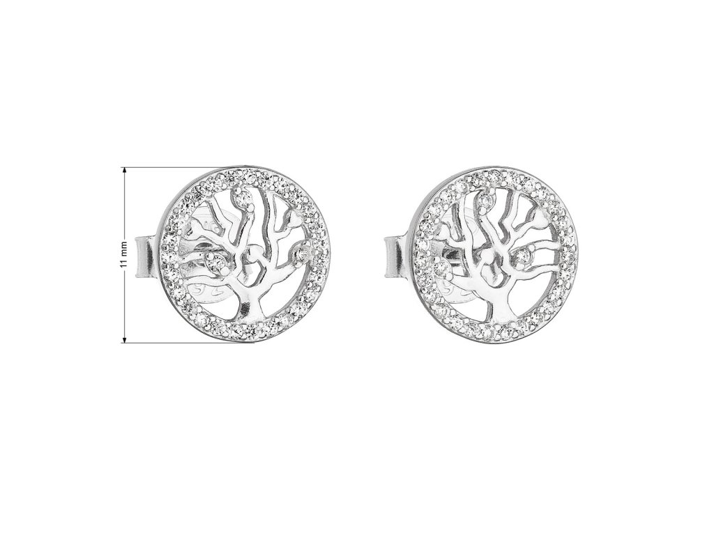 Stříbrné náušnice pecka se zirkonem v bílé barvě strom života 11218.1