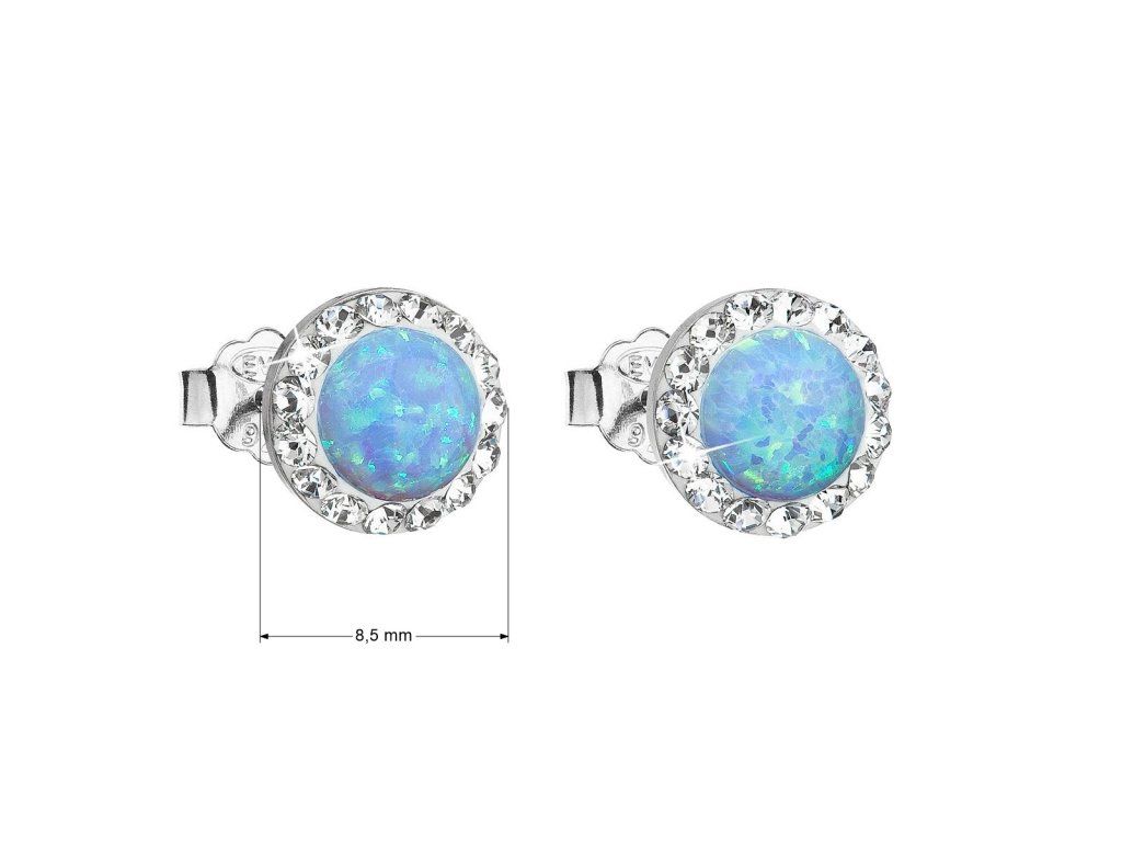 Stříbrné náušnice s opálem a Preciosa krystaly 31217.1 světle modré