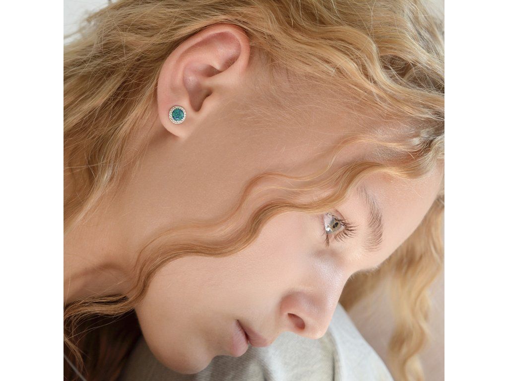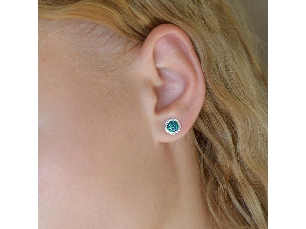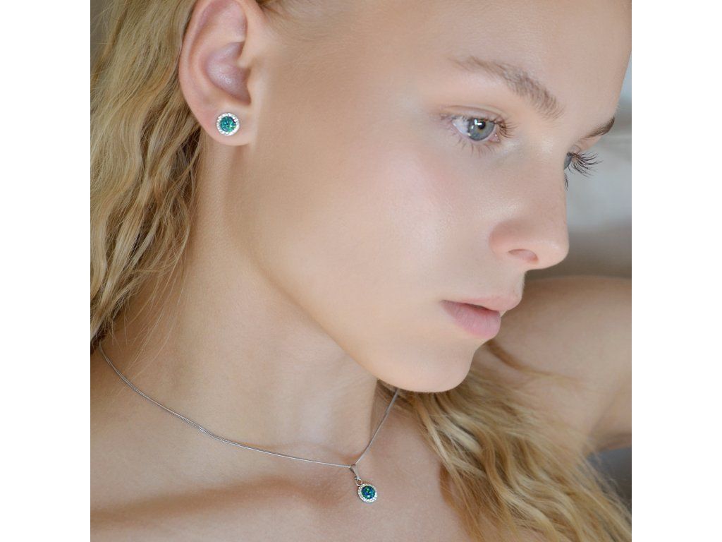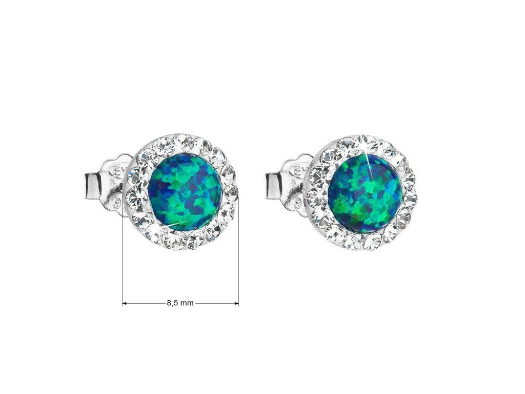 Stříbrné náušnice s opálem a Preciosa krystaly 31217.1 zelené