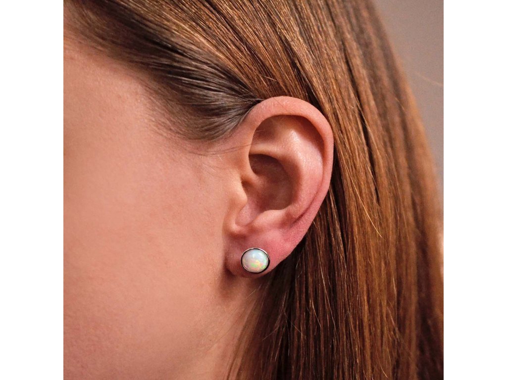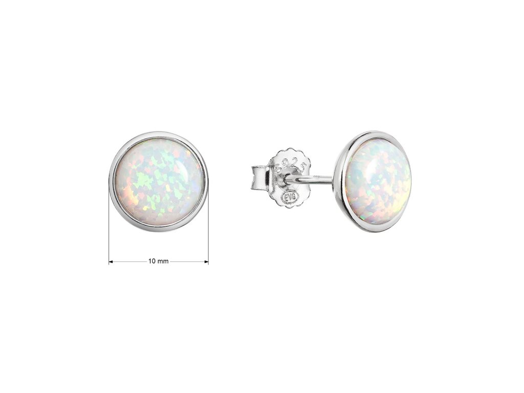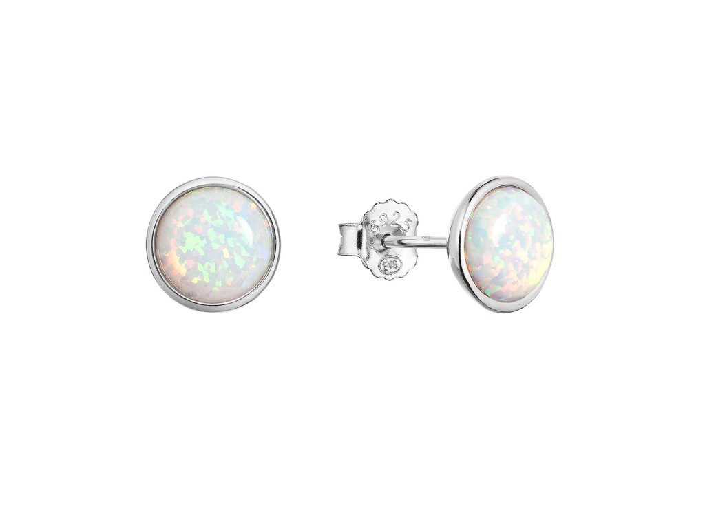 Stříbrné náušnice pecky se syntetickým opálem bílé 11465.1 white