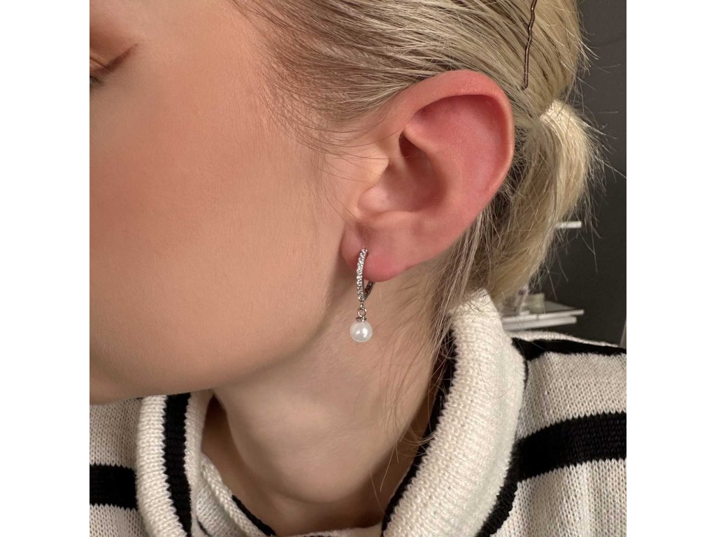 Stříbrný šperk o ryzosti 925/1000 doplňují třpytivé bílé zirkony a dokonale kulatá shell perlička, která je zavěšena na stříbrném očku náušnice. Shell perla je uměle vyrobená perla, která vznikla nabalovaním přírodní perletě. Má dokonale kulatý tvar a oslňující lesk. Visací náušnice 11426.1 se zapínají na kroužek a jelikož neobsahují nikl, mohou jej nosit i alergici. Stříbro obsahuje vrstvu rhodia, které ho chrání proti poškrábání, žloutnutí a zčernání.