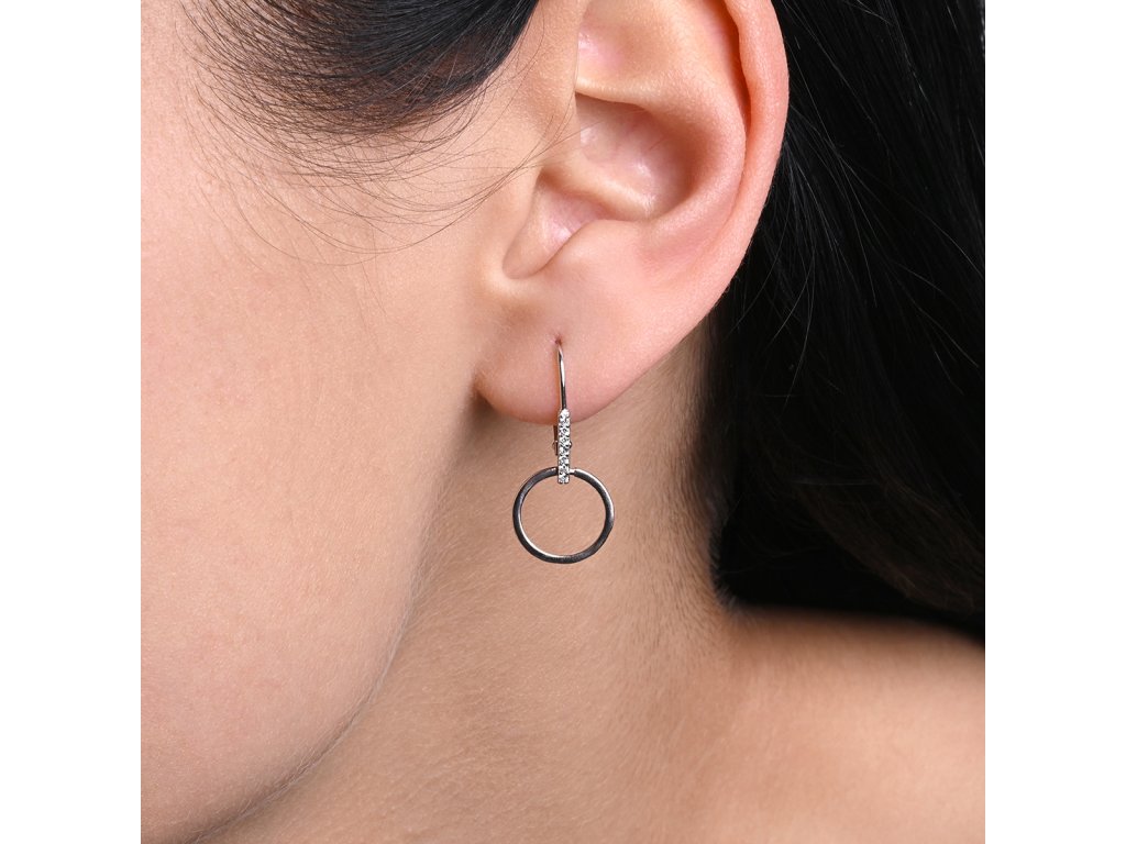 Náušnice jsou vyrobeny ze stříbra o ryzosti 925/1000 a jsou opatřeny vrstvou rhodia, která šperk ochrání před zčernáním, zežloutnutím nebo poškrábáním. Mají zapínání na klapku, která zajišťuje pohodlné nošení po celý den. Navíc je ozdobena drobnými kamínky. Kroužek celkový vzhled doplňuje a dodává mu zajímavý a moderní dotek.