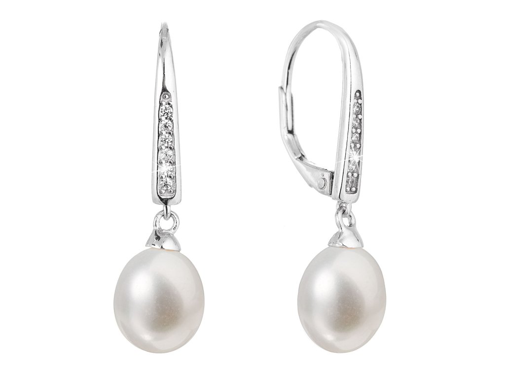 Stříbrné náušnice visací s bílou říční perlou 21059.1