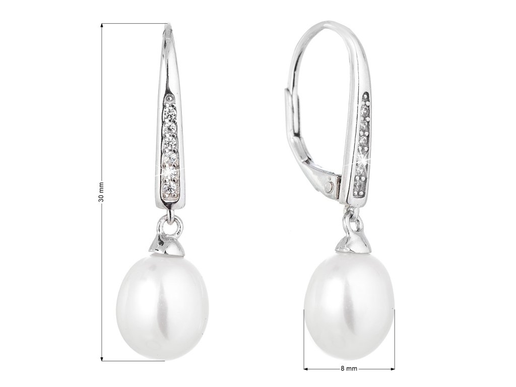 Parametry stříbrných visacích náušnic s bílou říční perlou 21059.1