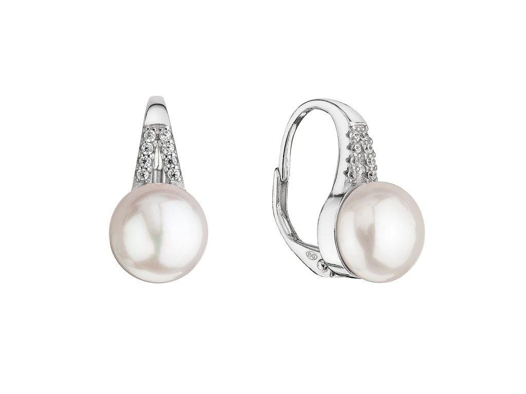 Stříbrné náušnice visací s bílou říční perlou 21070.1