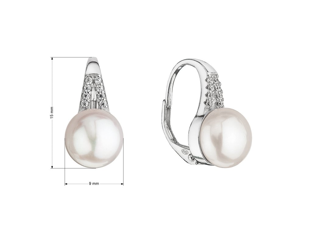 Parametry stříbrných visacích náušnic s bílou říční perlou 21070.1