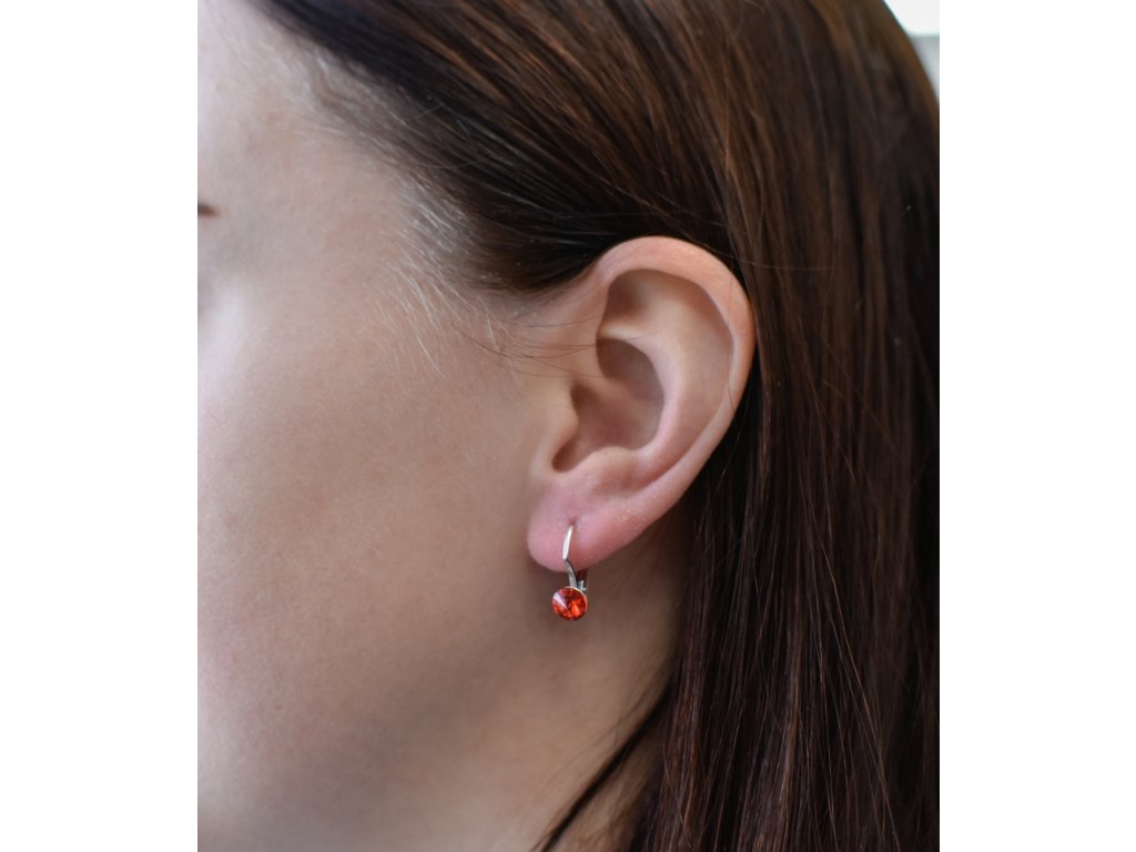 Parametry stříbrných visacích náušnic s krystaly Swarovski červené kulaté 31230.3
