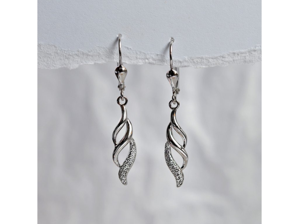 Stříbrné náušnice visací se zirkony bílé vlnky 11550.1 crystal