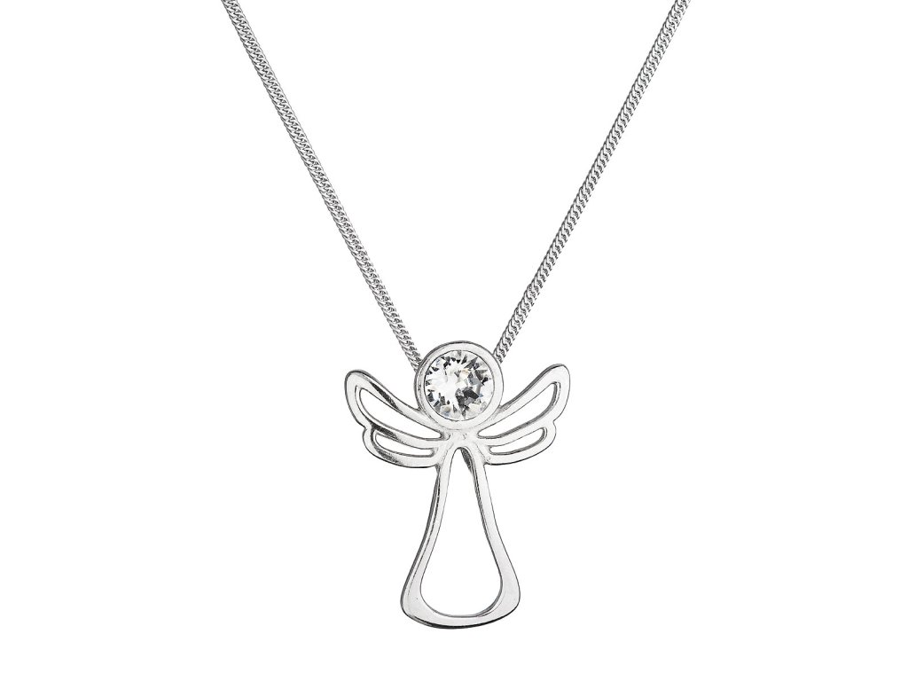 Stříbrný náhrdelník anděl se Swarovski krystalem 32080.1 bílý