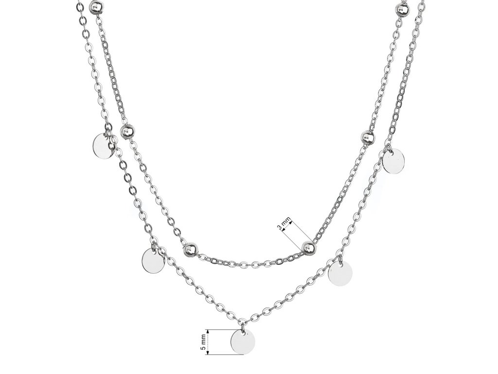 Stříbrný náhrdelník dvouřadý malé placičky a kuličky 62007