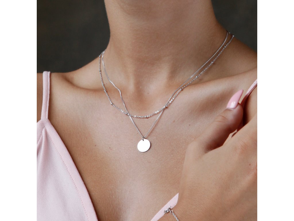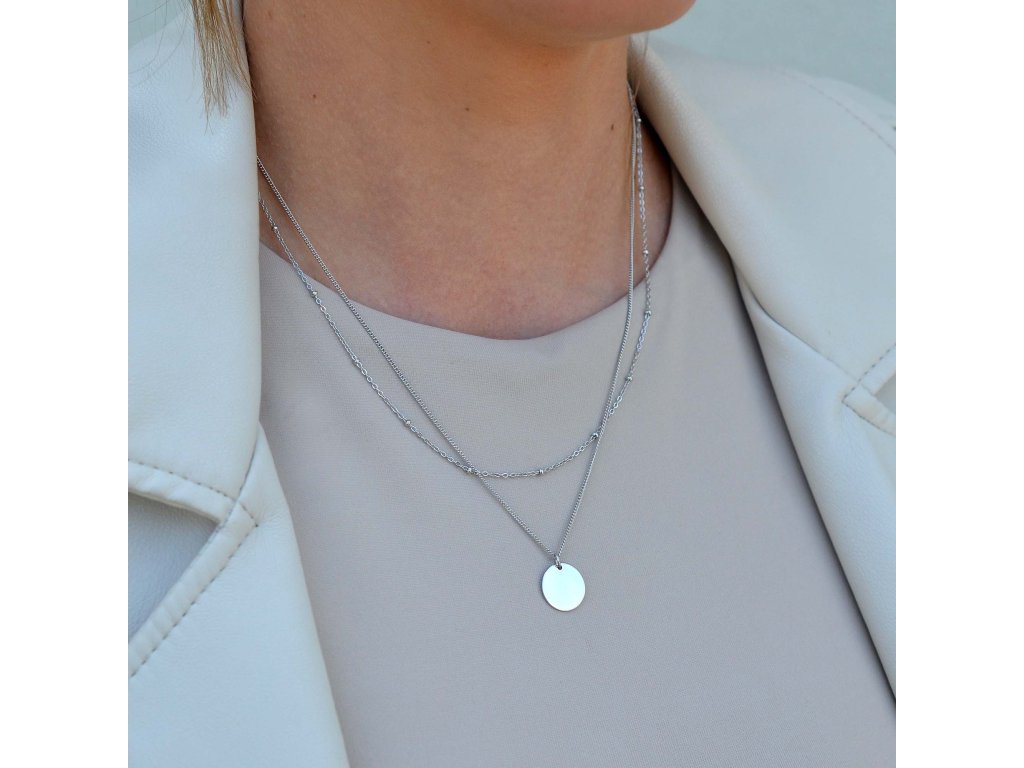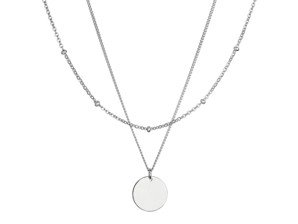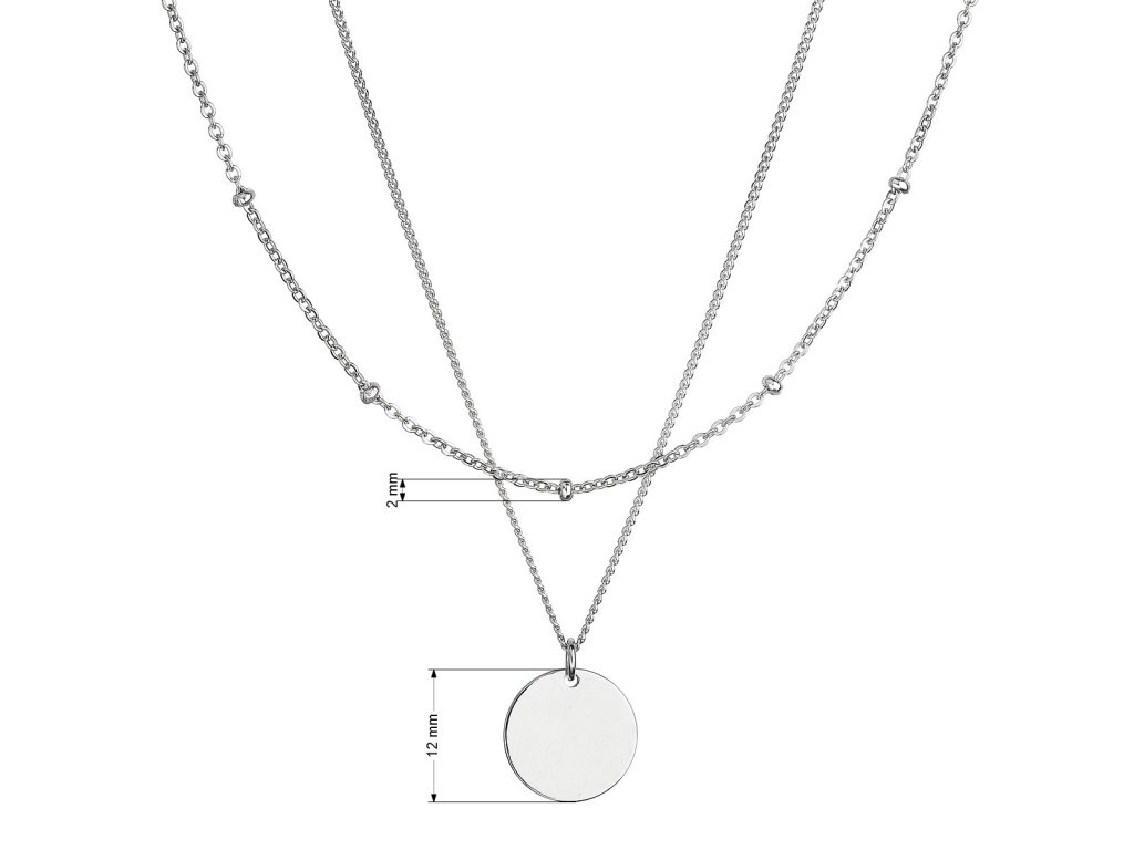 Nový moderní a elegantní styl jsou dvojité náhrdelníky a náramky. Jděte s módou s novým stříbrným náhrdelníkem 62002, jež tvoří dva řetízky, jeden s jemnými kuličkami po obvodu a druhý s moderní leštěnou stříbrnou placičkou.