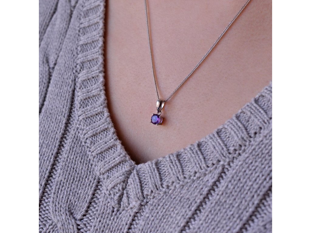 Nejenom k náušnicím stejného designu se hodí tento jemný jednoduchý náhrdelník s pravým amethystem.