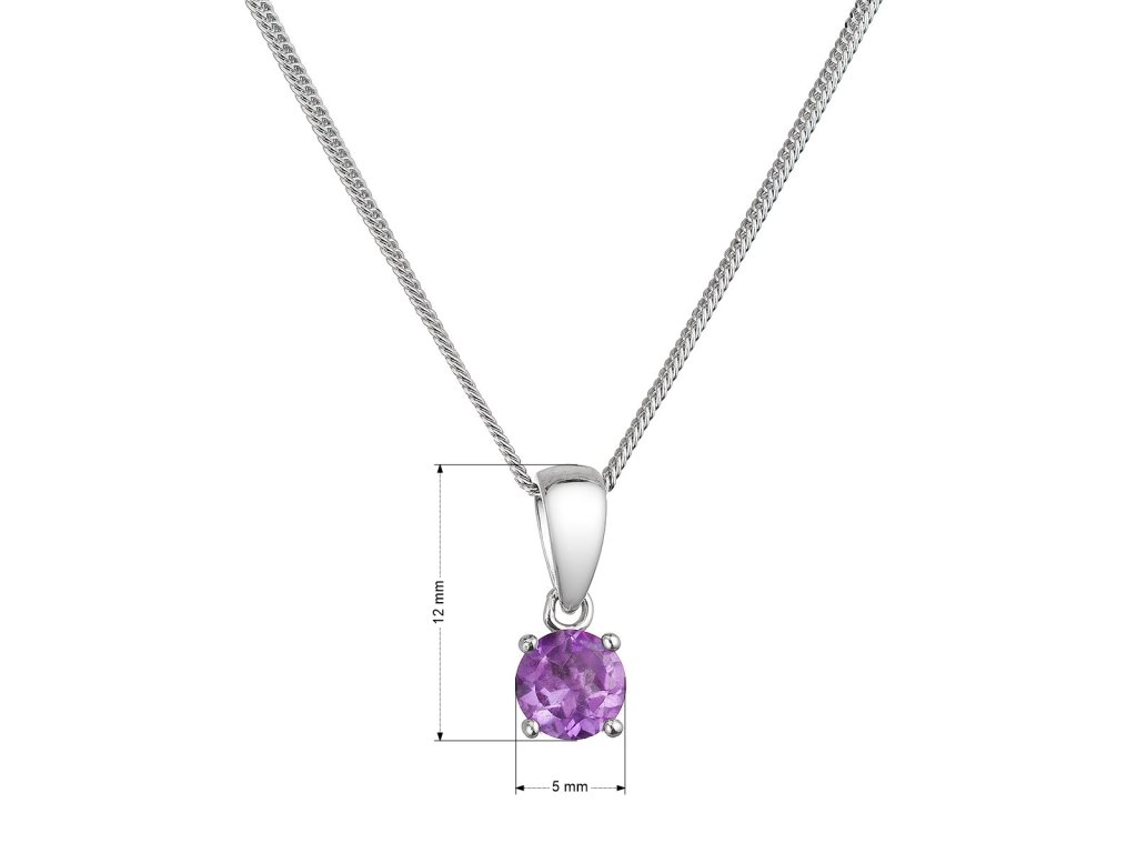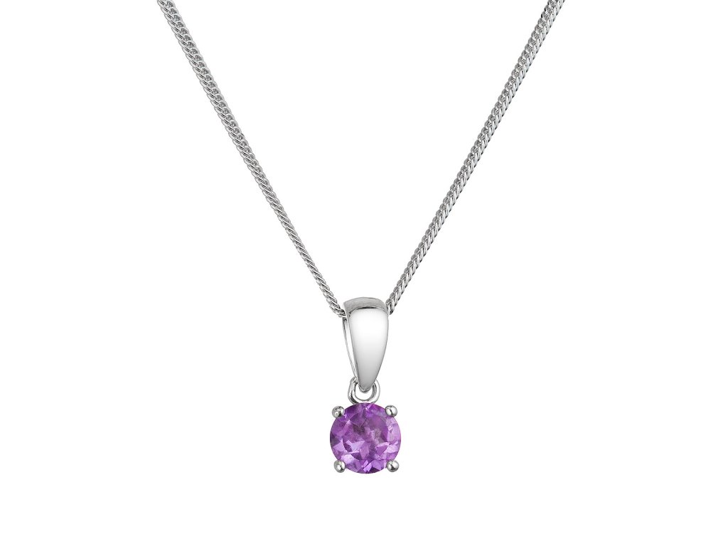 Náhrdelník 12078.3 je vyrobený ze stříbra ryzosti 925/1000 včetně povrchové úpravy rhodiem s kulatým pravým amethystem. Průměr kamene je 5 mm a délka stříbrného řetízku je 45 cm.