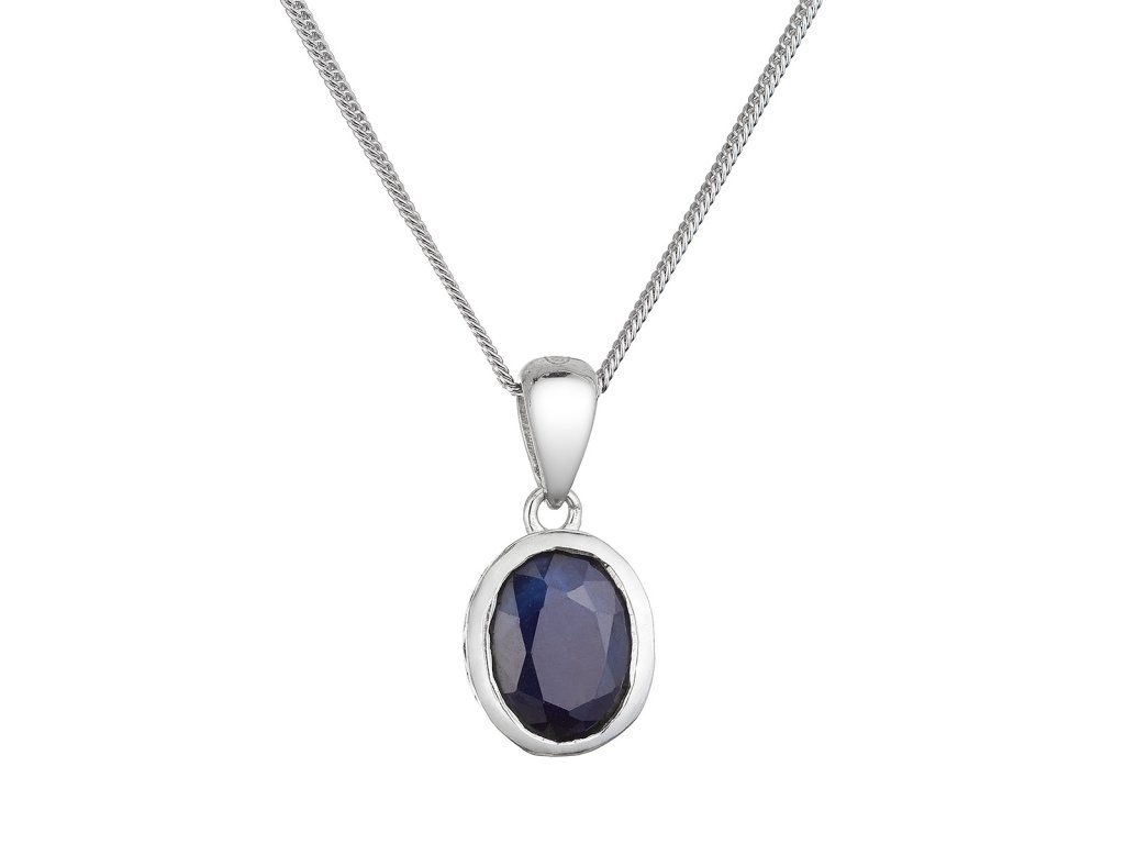 Stříbrný náhrdelník temně modrý safír 12087.3