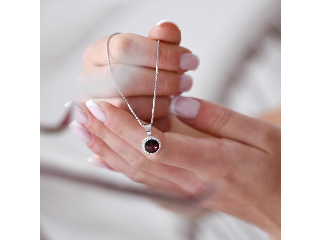 Stříbrný přívěsek s krystaly Preciosa fialový kulatý 34251.3 amethyst