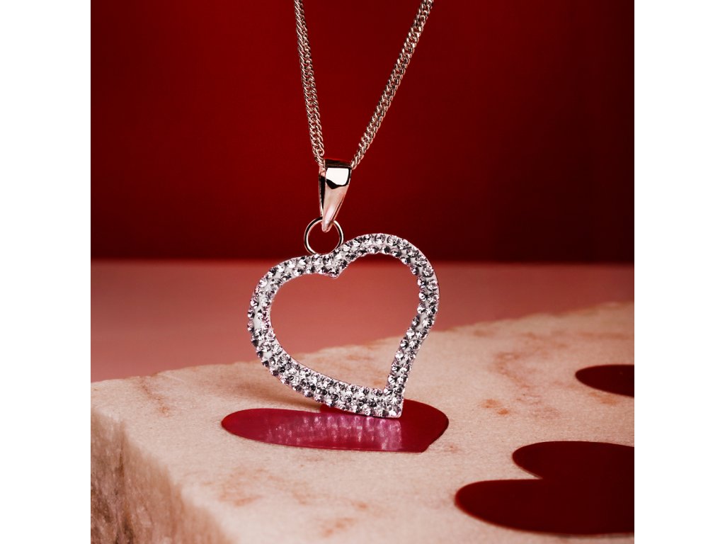 Stříbrný přívěšek 34093.1 o délce 27 mm ve tvaru srdce je osázen mnoha třpytivými Swarovski krystaly v bílé barvě. Na přívěšek bylo použito stříbro ryzosti 925/1000, jehož povrch prošel úpravou rhodiem. Rhodium šperk ochrání proti zčernání, zežloutnutí nebo poškrábání. Jelikož šperk neobsahuje žádný přídavek niklu, je vhodný i pro alergiky.